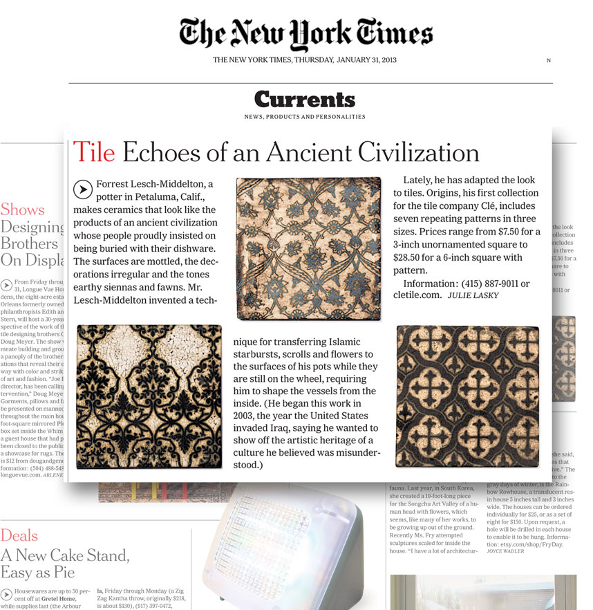 this month, clé launched the culturally provocative new tile series, origin, by forrest lesch-middelton. the art tiles delicately decorated, are modern versions of historic classics. to read more, please click on the photo below: